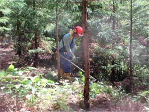 実施内容 | 農園、杉幼齢林(親子で森づくり体験会場)の下刈り |