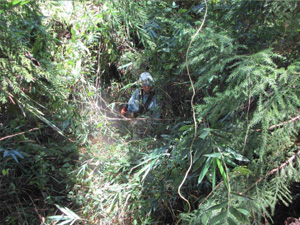 遠目には手入れされた杉林のように見えましたが、近づくと雑草木が密集し中に入ることも出来ません。